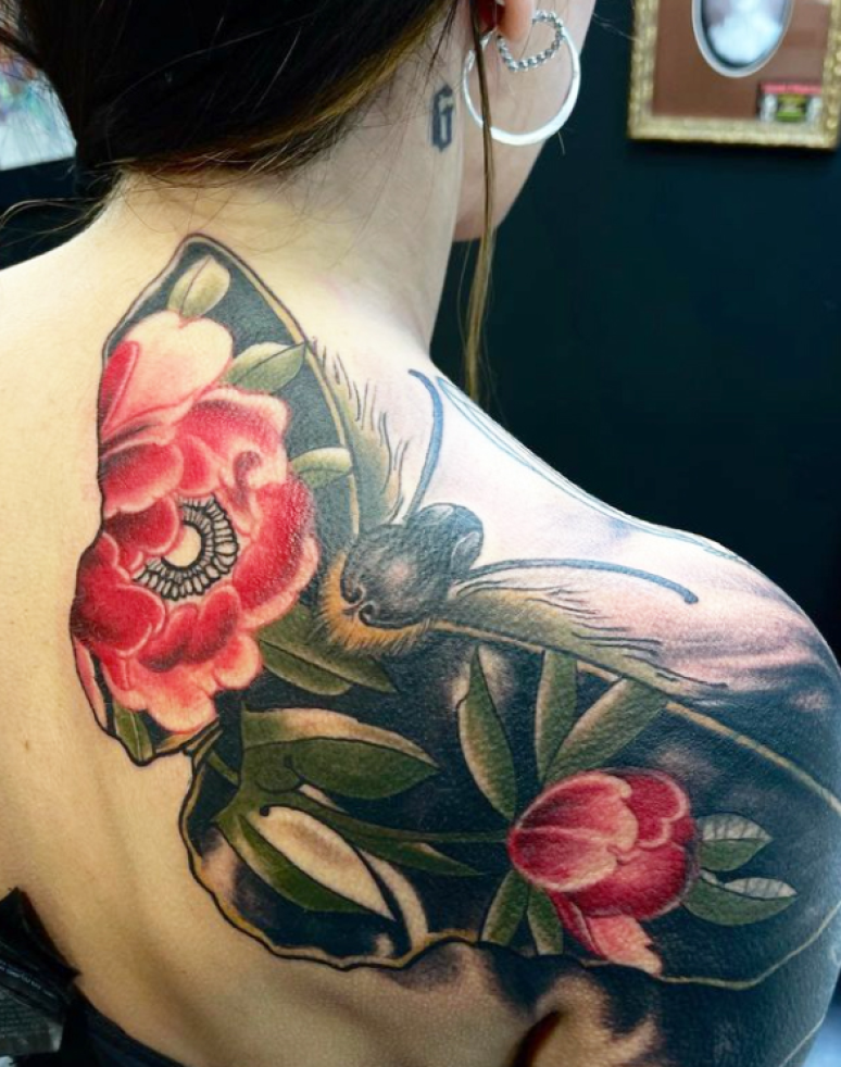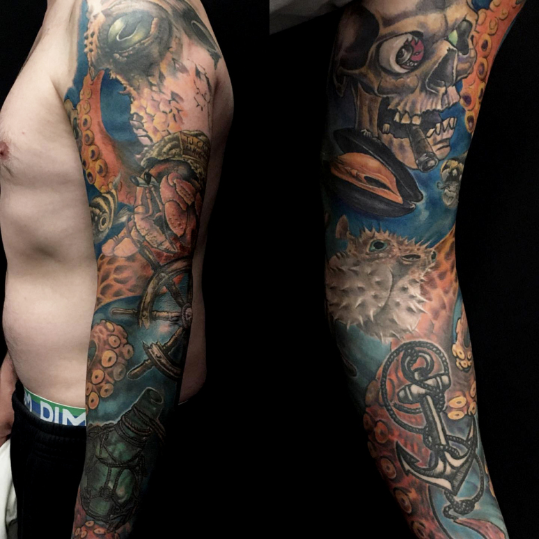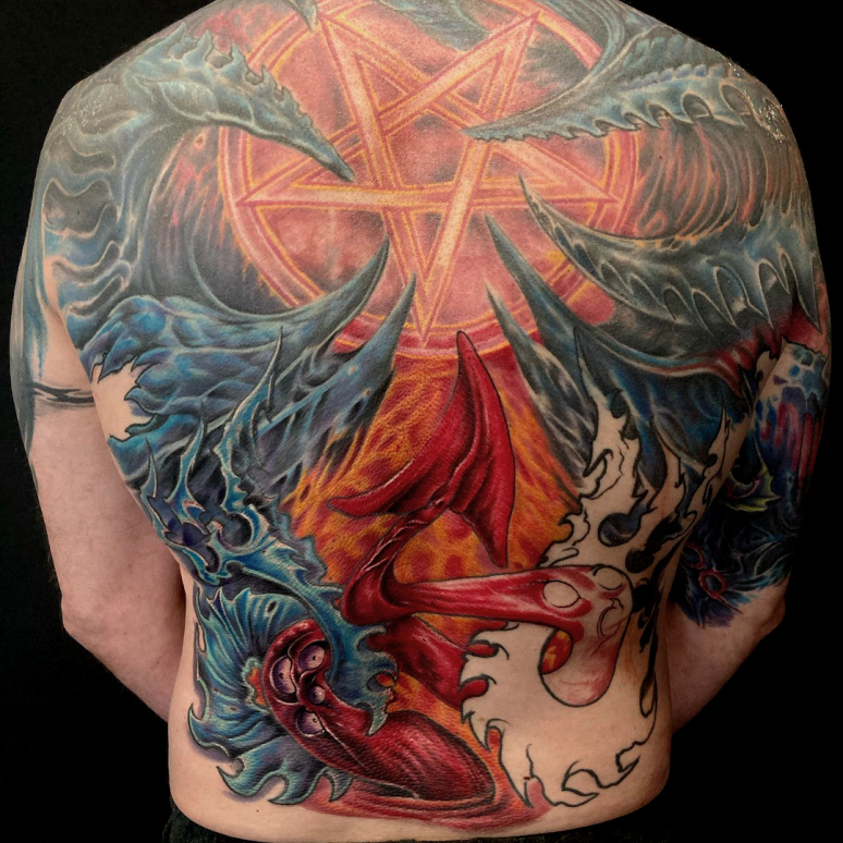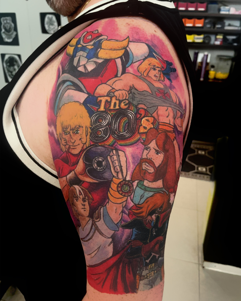 David tatoue, le plus souvent en couleurs, dans des styles aussi variés que le New School, le Manga, la BD et l'organique.
