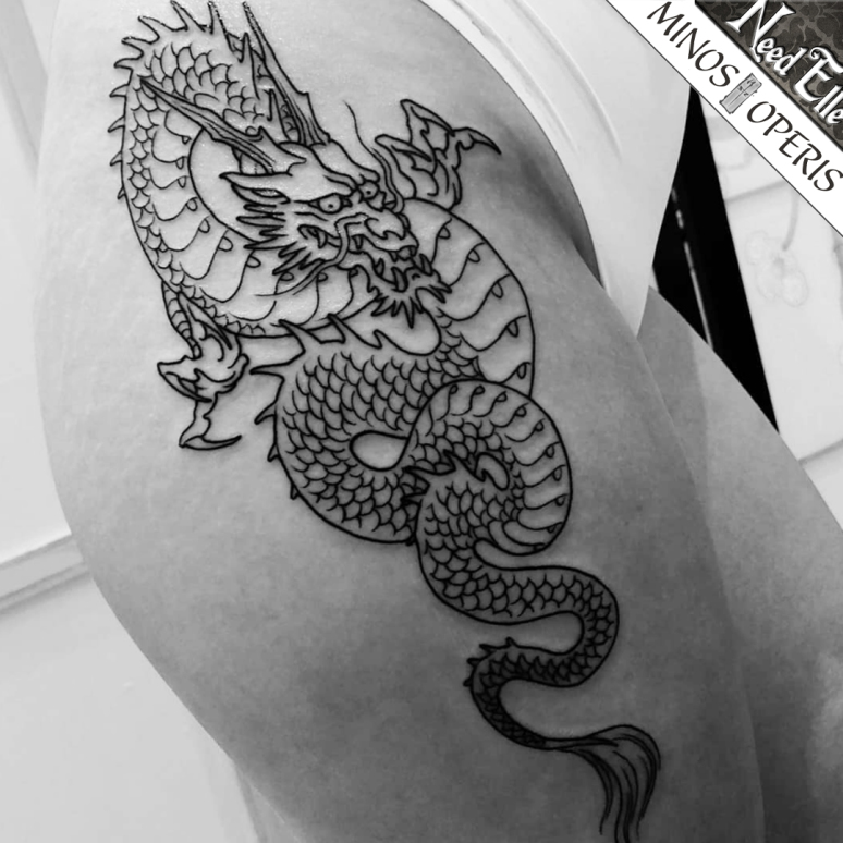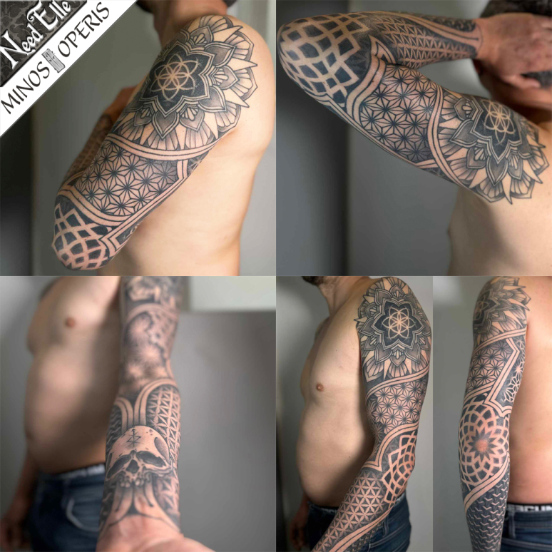 Simon, alias MINOS OPERIS, propose chez NEED ELLE Tattoo Shop II - La Rochelle un travail essentiellement en noir et gris. Il pioche souvent son inspiration dans le médiéval et la fantasy, mais ne dédaigne pas le floral, l'ornemental et même le pattern géométrique.