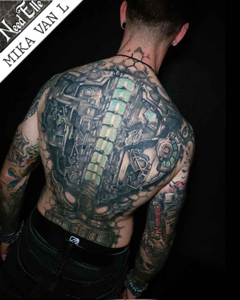 Tout un dos inspiré par l'univers du jeu Dead Space - Un tatouage par Mika VAN L