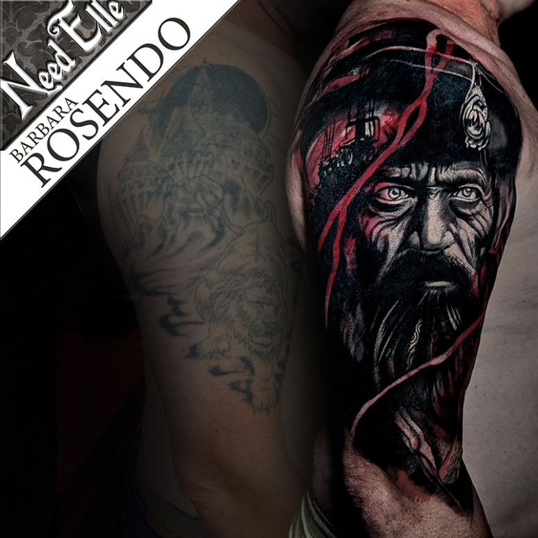 Deux pleines séances d'une journée chacune on été nécessaires pour ce tattoo portrait réalisé par Barbara ROSENDO.