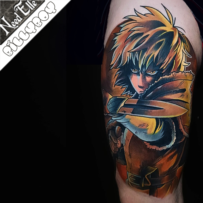 Des teintes inhabituelles pour ce tatouage inspiré du manga Vinland Saga - Réalisé par BILLYBOY