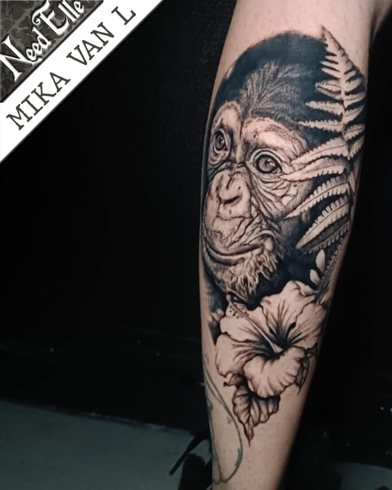 Tattoo-Portrait de notre cousin le Chimpanzé, réaisé par Mika VAN L