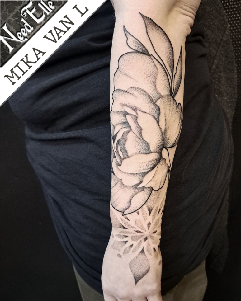 Une pivoine sur l'avant-bras, tatouage très féminin signé Mika VAN L