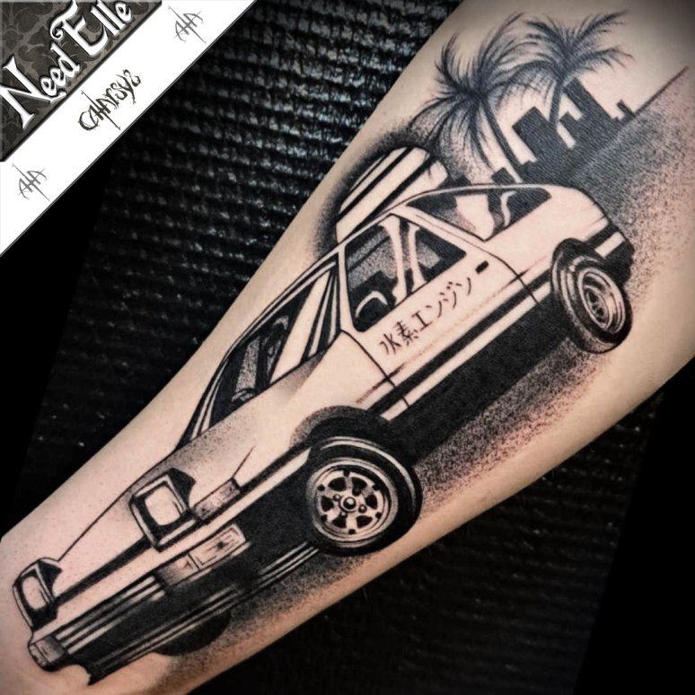 CATARSYS est sortie de ses sujets Dark habituels avec ce tattoo représentant, très précisément, une Initial D Toyota AE86(rien que ça)